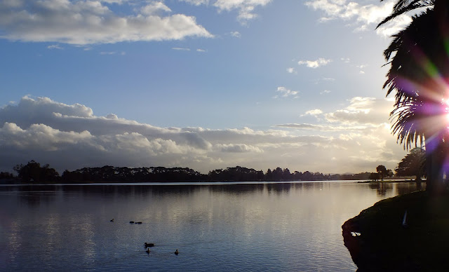 As it turns out a pretty nifty operating mode for this camera. When I first choose this setting the default on my camera was Auto ISO 400 as the starting point with Dynamic Range set to DR200%. To start with I left it there until I came to a shot that on the HS10 would have blown out completely or just plain been impossible. The following images show what the camera is capable of. The first is the overall seen taken approx 15 minutes before sunset looking just west of the sun's position. In the first image the color and IQ are very good and there is little noticeable noise. To the right and in the distance the light around the trees and water has taken on a copper hue and I wanted to capture that look. The first shot I took (deleted) was taken at DR200% but it tended to blow out fairly badly. I dialed up DR400 and the camera took the shot, rather nicely I think. Color and hue was maintained as you can see from the grassed area. I even like the lens-flare from the sun on the right hand side.
