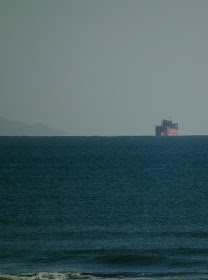 The last image gives a clearer idea of what the day and light was like. Directly out to sea and inline with the ships was a low lying band of sea haze, which can be seen in the wide angle shots as a light brownish haze just above sea level. This haze is more evident in the telephoto shots as we lose the blue of the sky as the zoom is applied. As an added point of interest there was a great deal of image shimmer observable. Whether this was from air currents further out to sea or heat shimmer was not readily clear. Perhaps a bit of both may be the answer.